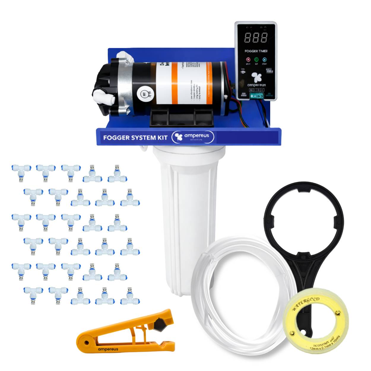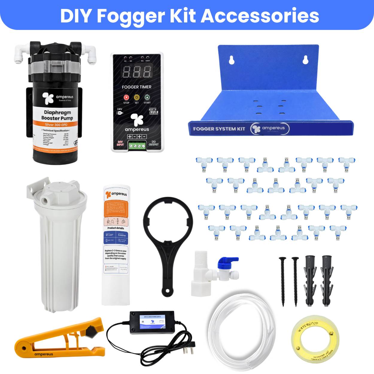 Fogger Kit for Dairy Farm is a top-performance fogger system designed to provide efficient cooling and humidity control in dairy farms. Featuring a powerful 300 GPD pump, this high-performance fogger system confirms consistent misting, reducing heat stress and maintaining a comfortable environment for livestock. With 30 durable nozzles and a 50m pipe, this fogging system delivers a fine mist that evenly distributes across large areas. The nozzle distance of 1.4 meters optimizes coverage, confirming effective cooling while maintaining best humidity levels. This dairy farm cooling system helps improve animal well-being, increase productivity, and create a healthier atmosphere. Built for durability and efficiency, the AMPEREUS fogger machine is easy to install and operate, making it a cost-effective fogger kit for dairy farmers. Its water-efficient technology minimizes wastage while maximizing performance. Whether you need humidity control or temperature management, this fogging system is the perfect solution.